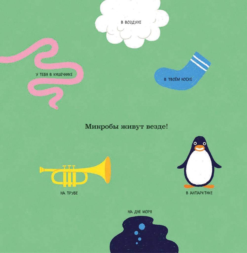 Узнай, какие бывают микробы, как они выглядят и где живут. И помни: лизать эту книжку, как и любые другие, вредно для здоровья.