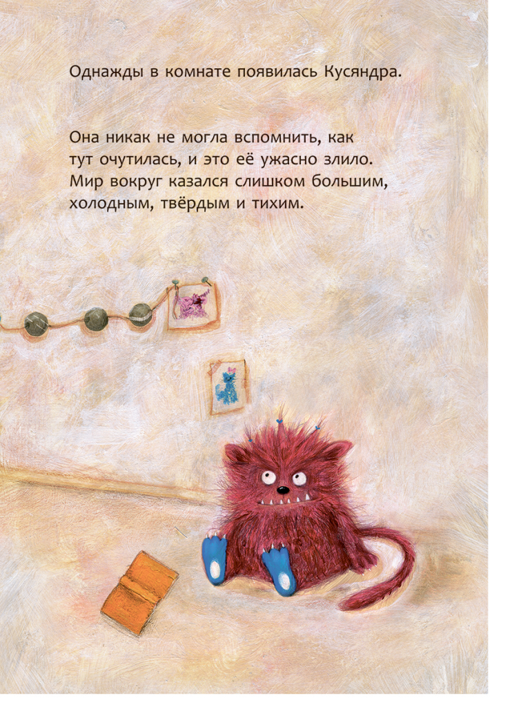 Кто такая Кусяндра и откуда она взялась в комнате? Почему у нее острые когти? И, самое главное, почему её просто разрывает от злости? Она и сама не знает, и даже кот на шкафу не дает ответа. Кусяндра хочет крушить все вокруг, но среди треска и грохота слышит загадочное «тук-тук»…
