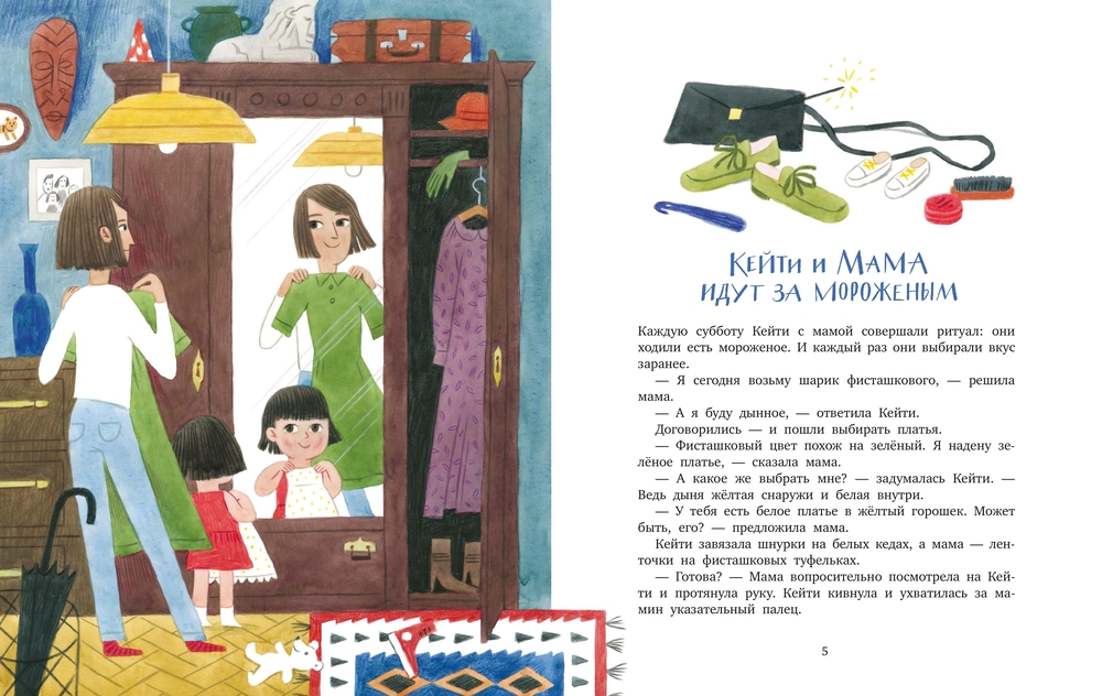 В каждой сказке Кейти с мамой отправляются в яркое и необычное приключение, которое неизменно заканчивается дома в тёплой и уютной кроватке.