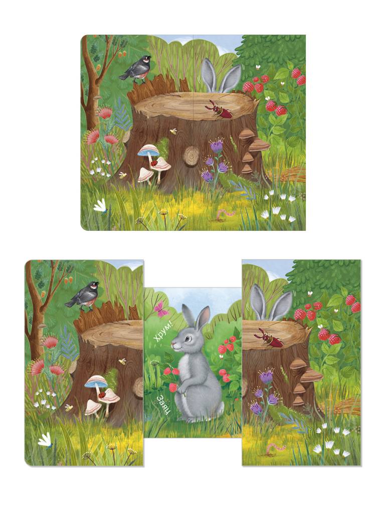 Раздвижная книжка-картонка «КТО ТАМ СПРЯТАЛСЯ?» познакомит вашего малыша с животными, которые спрятались в среде обитания, а задача ребёнка ‒ попытаться отгадать, кто там скрывается!