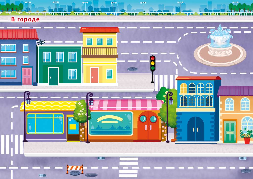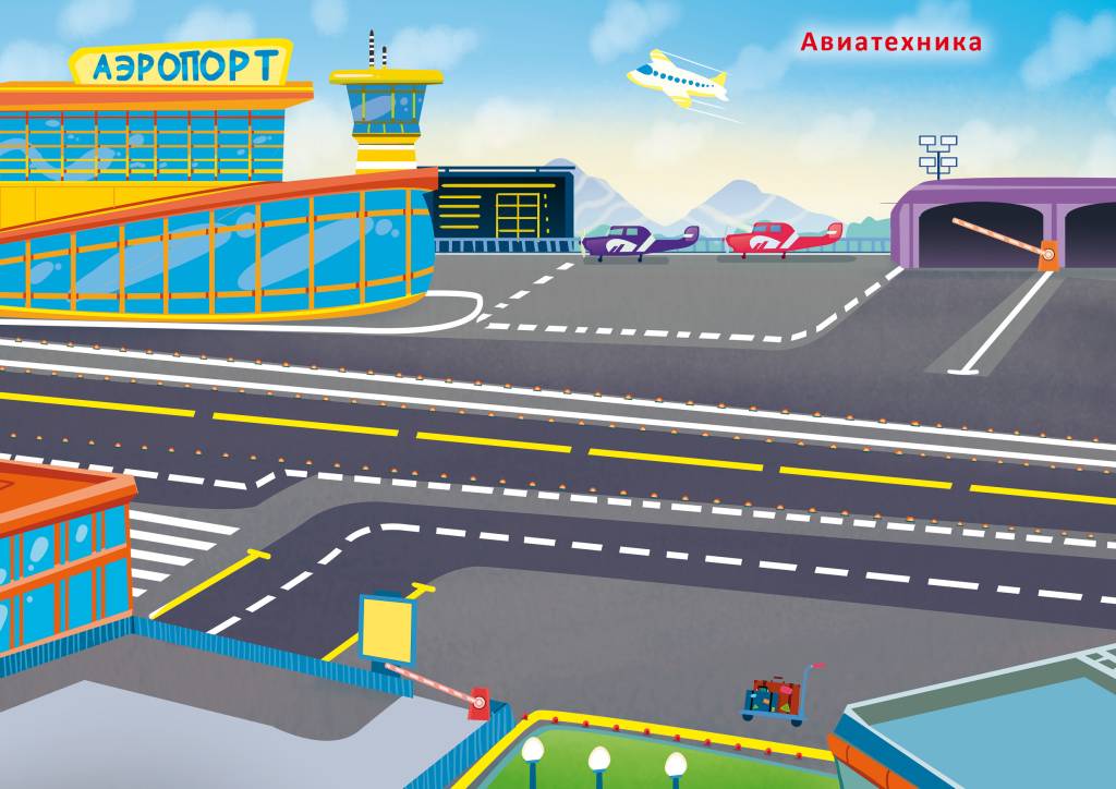 - 12 тематических фонов в музее, транспорт в городе, техника на стройке, спецтехника, в космосе и др.