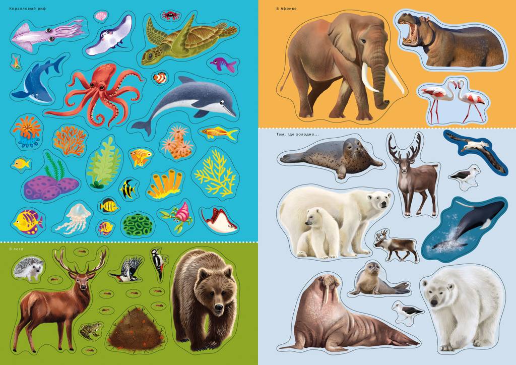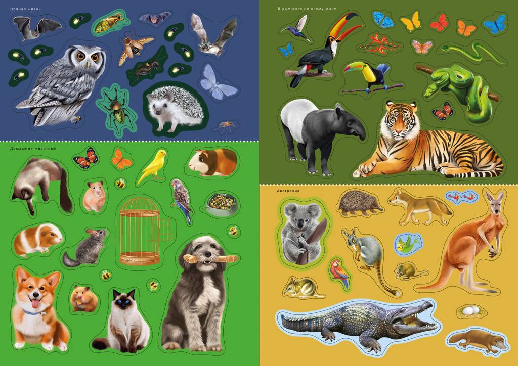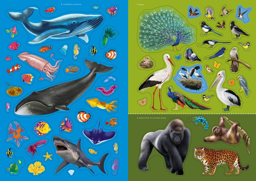 У вас в руках не просто книжка с наклейками, а целый альбом с различными увлекательными заданиями, которые помогут ребёнку не только тренировать мелкую моторику, приклеивая наклейки на фон, но и развивать мозг, кругозор и речь, воображение и фантазию, внимание и логику, визуальное восприятие, аккуратность и усидчивость. Приклеивай наклейки, выполняй задания – и проводи время весело и с пользой! Топ-3 главных преимуществ: 3. Оптимальное соотношение цены и качества 2. Расширенный возрастной диапазон (от 2 до 6 лет) за счёт разного размера наклеек 1. Подходит для многократного использования из-за большого количества заданий Что найдем внутри: - 12 тематических фонов и более 200 наклеек на тему животных - ребёнок изучит различные их виды: домашние и дикие, морские и лесные, ночные и живущие в коралловых рифах, на ферме, в Африке или в Австралии, в джунглях или там, где холодно. Важно знать родителям: Книга поможет ребёнку не только тренировать мелкую моторику, но и развивать мозг, кругозор и речь, воображение и фантазию, внимание и логику, визуальное восприятие, аккуратность и усидчивость. Рекомендовано от 3 лет.Характеристики