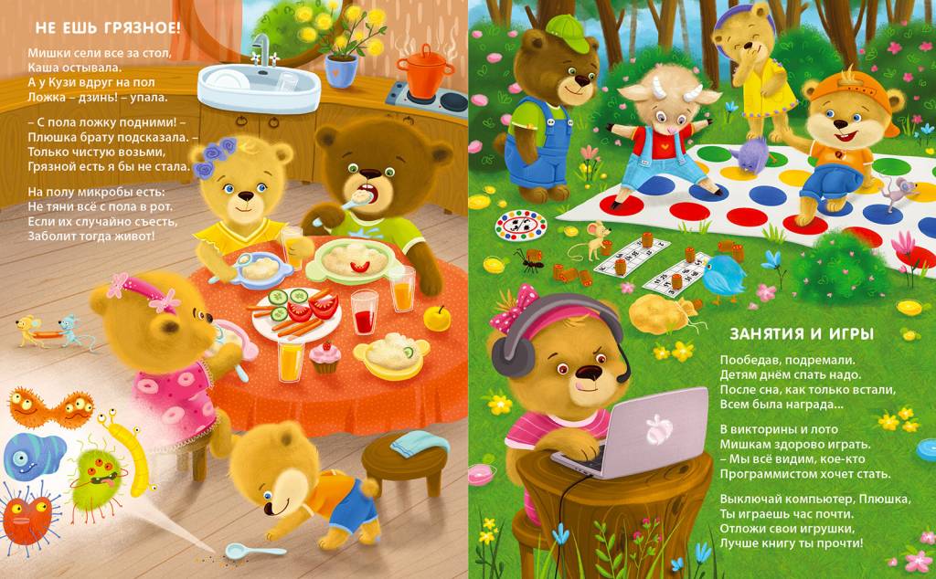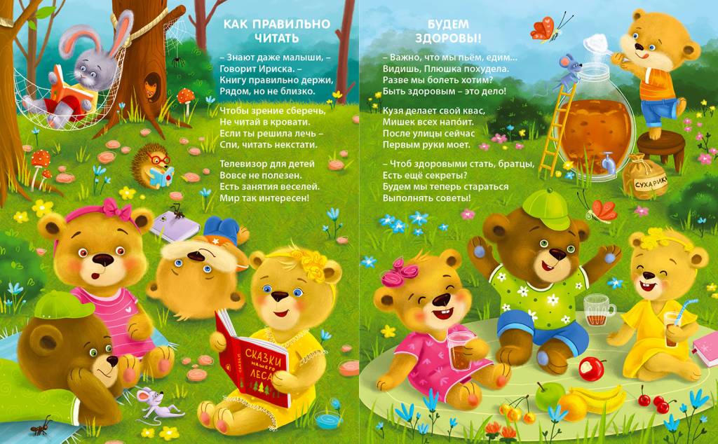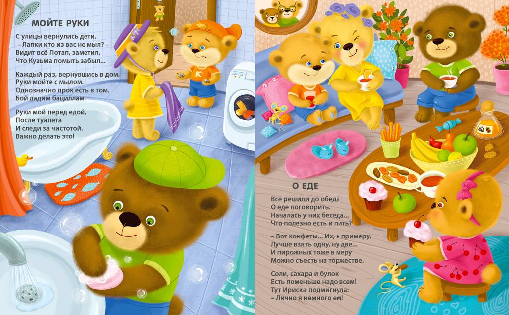 Читайте истории о любознательных медвежатах ДружиМишках, рассматривайте красочные иллюстрации и обсуждайте прочитанное с ребёнком.