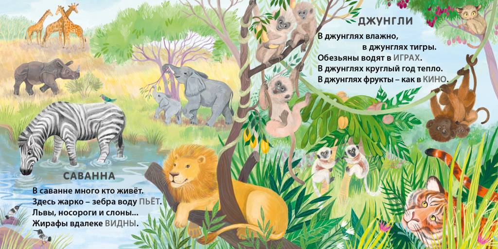 Книжка-картонка «КТО ГДЕ ЖИВЁТ. Загадки-рифмы» в стихах Евгения Сосновского познакомит вашего малыша с различными животными, птицами, насекомыми и местами их обитания: лес, степь, саванна, джунгли и др. Стихи написаны так, чтобы ребёнок смог сам срифмовать названия животных и другие слова.