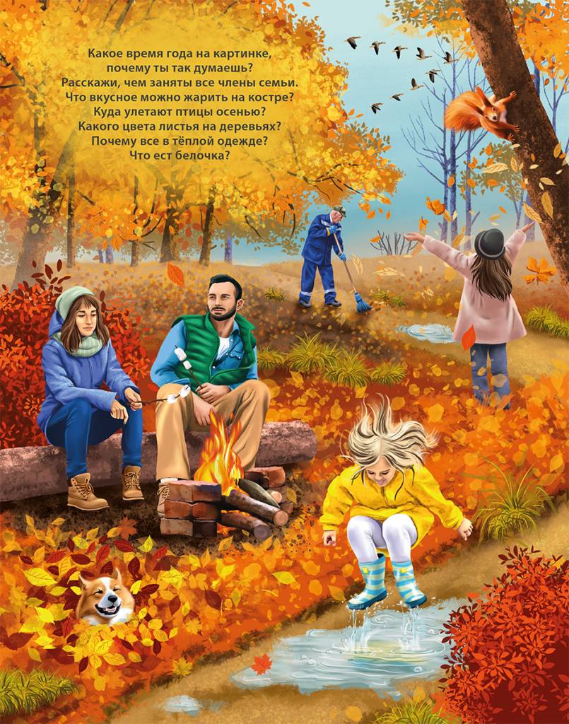- На каждом развороте есть вопросы к сюжетной картинке, которые помогут лучше усвоить материал.