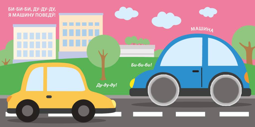 На каждом развороте книги есть тактильная вставка и чистоговорка для запуска и развития речи.