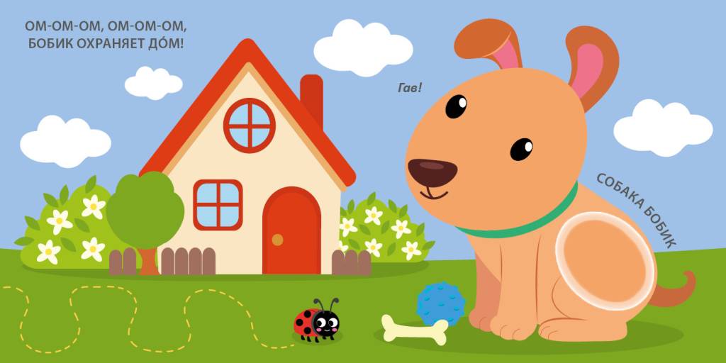 - Благодаря ярким иллюстрациям, тактильным вставкам и чистоговоркам ребёнок научится произносить первые слова, расширит кругозор, будет развивать мелкую моторику, тренировать слуховое и зрительное восприятие, внимание и память.