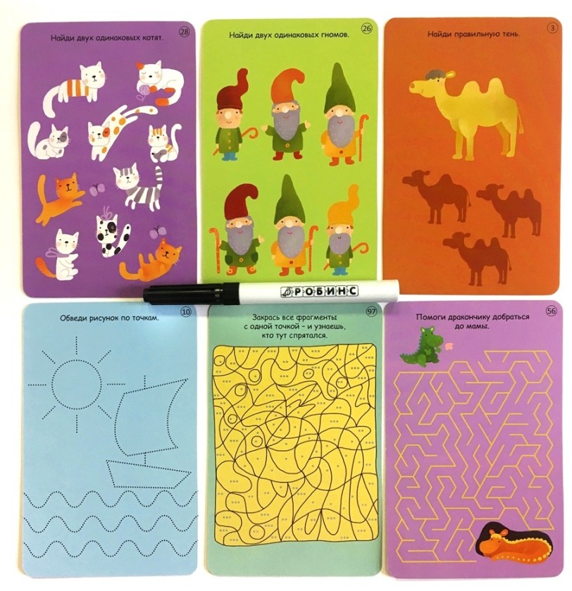 - Для работы с карточками можно использовать любой фломастер на водной основе, который легко стирается, что позволяет выполнять задания много раз.
