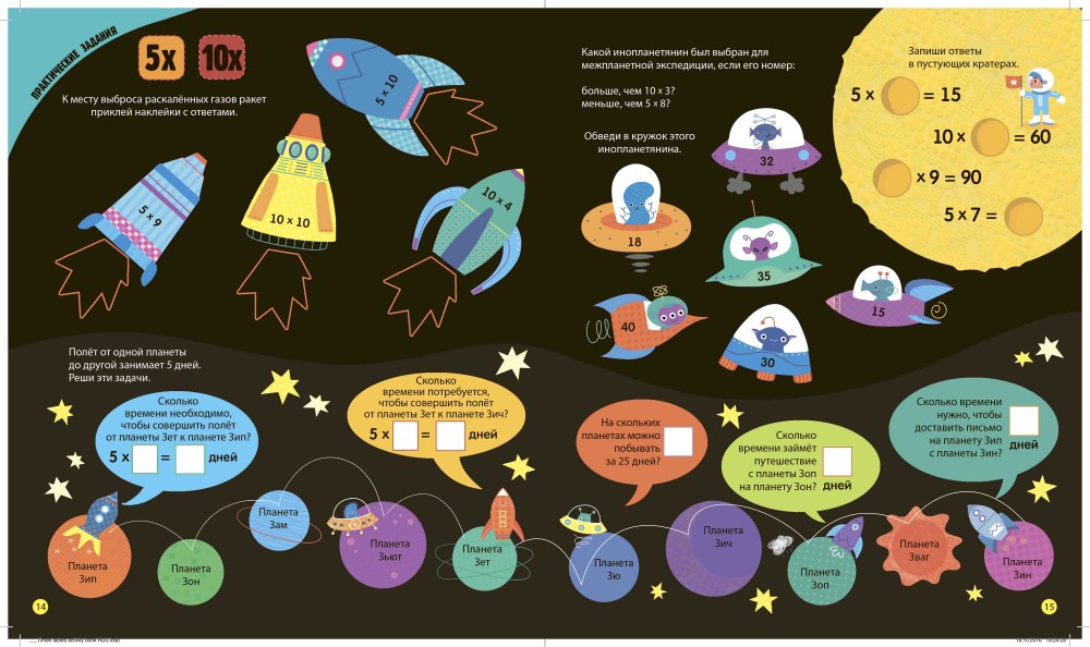 Уникальное игровое пособие с играми, задачками на умножение и счет, головоломками, лабиринтами из чисел и не только!Каждый разворот – это настоящее приключение в мире счета и чисел. Считай, выполняй задания, раскрашивай, умножай, разглядывай и клей наклейки!