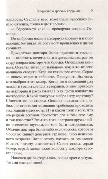 Напуганный врачебным диагнозом Освальд Т. Кэмпбелл бежит из холодного сырого Чикаго на юг в гостеприимный городок Затерянный Ручей, где собирается встретить свое последнее Рождество. Ничего хорошего от захолустья он не ожидает, но реальность оказывается совсем не такой, какой он себе ее воображал. Жизнь в Затерянном Ручье хоть и размеренная, но весьма необычная и даже странная. И жители городка тоже весьма необычны. Почтальон доставляет корреспонденцию на лодке. В единственном магазинчике хозяйничает маленькая красная птичка по имени Джек. Дамы городка тайно творят добро, объединившись в эзотерическое общество под названием "Крупные горошинки ". А сам Освальд оказывается вдруг главной фигурой местной светской жизни. Вместе с приближением Рождества начинают происходить удивительные события, которые изменят не только жизнь Освальда, но и всех обитателей Затерянного Ручья. Роман Фэнни Флэгг – настоящая рождественская сказка, странная, притягательная, теплая и полная самого обычного волшебства, которое под силу многим, стоит только очень захотеть. Книга для всех, кто стосковался по доброму слову и красивой истории.Характеристики