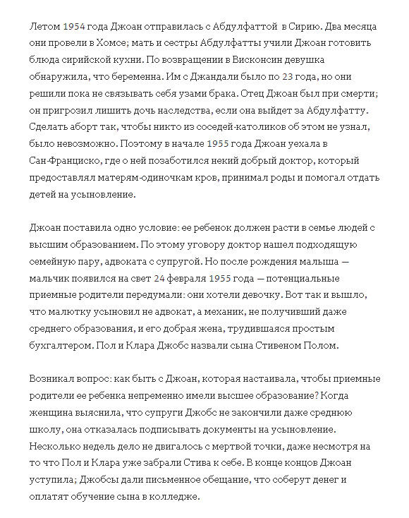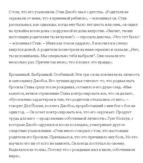 "Стив Джобс. Биография" В основу этой биографии легли беседы с самим Стивом Джобсом, а также с его родственниками, друзьями, врагами, соперниками и коллегами. Джобс никак не контролировал автора. Он откровенно отвечал на все вопросы и ждал такой же честно