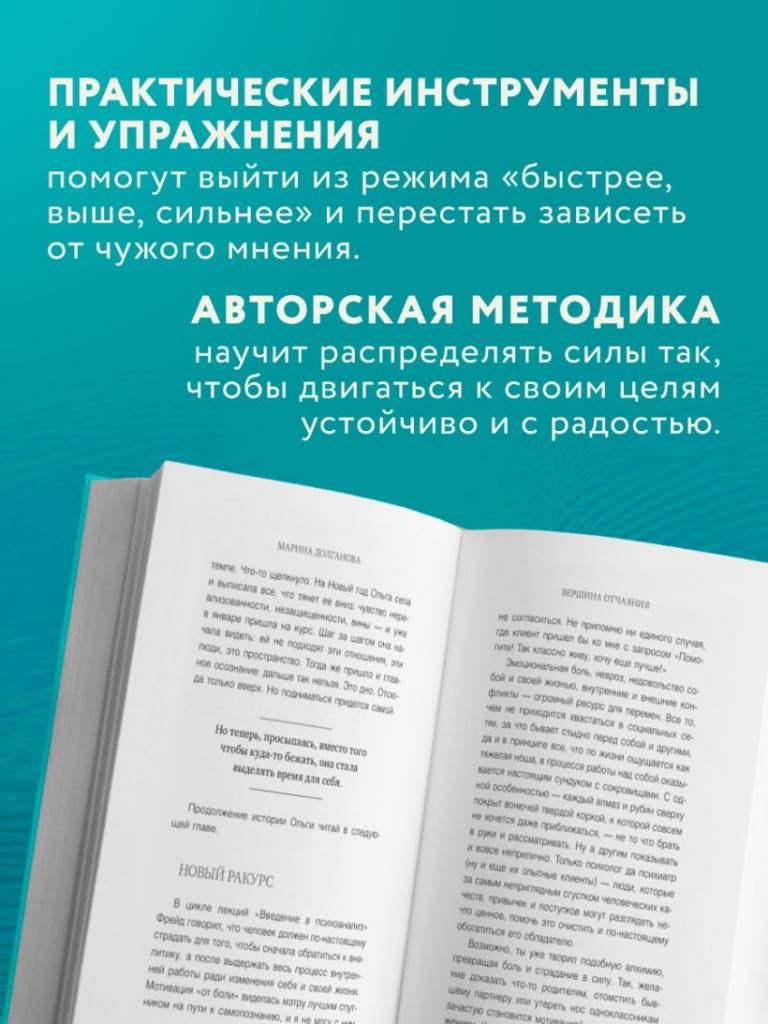 Эта книга — для тех, кто устал от гонки, в которой не выбирал участвовать. Для тех, кто хочет вернуть себе осмысленность и опору. Марина Долганова, практикующий психолог, предлагает 6-ступенчатную авторскую методику, основанную на глубокой психологической работе и сотнях часов терапии.