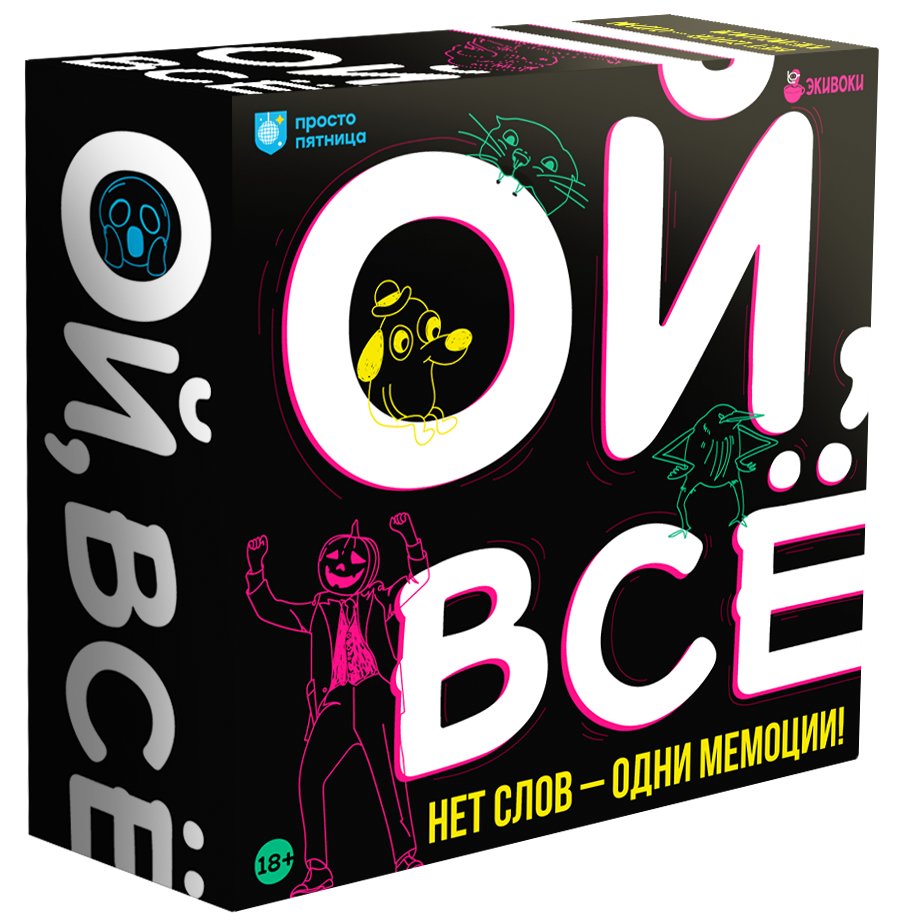 "Ой, всё!" – это не только захватывающая развлекательная игра, но и активатор ваших суперспособностей, таких, как эмпатия, эмоции и взаимодействие. Она идеально подходит для компании и может послужить весёлым тестом на совместимость! Игроки разбиваются на пары, а победителем становится та пара, у которой эмоции совпали чаще всего!Механика игры проста и понятна каждому, кто играл в мемы. Однако, "Ой, всё!" значительно глубже и многограннее. На игровом столе размещаются 16 карточек с известными мемами, а игроки используют двойные фишки для отслеживания своих очков и силы совпадения эмоций. Дальше всё просто: каждый участник берёт карточку с ситуацией, читает её вслух и выбирает мем, который наиболее точно отражает его реакцию. Если ответы совпадают, пара перемещает свои фишки вперед по дорожке эмоций. Узнайте себя и друзей с новых сторон, и возможно, найдите свою родственную душу!