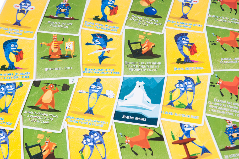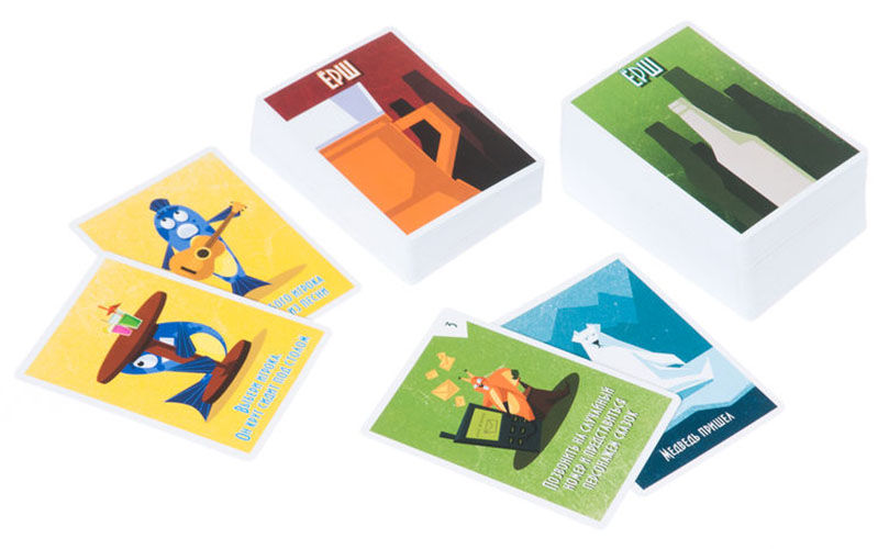 Ёрш - алкогольная настольная игра, которая выносит за один раз целую компанию. Принцип очень простой: надо тянуть карточки со смешными заданиями и выполнять их. Если не хочется - надо выпивать штрафную.Играть очень просто. В свой ход игрок тянет карточку с заданием. Задания составлены так, чтобы все было весело. Попробуйте рассказать сказку про репку от лица репки. Сказать тост о женской красоте, используя слова "дефицит" и "партеногенез". Или за 20 секунд рассказать алфавит в обратном порядке, начиная с буквы Ё. Вам нужно решить: будете ли выполнять это задание или нет. Если вы выбираете задание и справляетесь с ним - получаете карточки бонусов. Если вы отказываетесь от задания или не справляетесь с ним - то выпиваете штрафную.