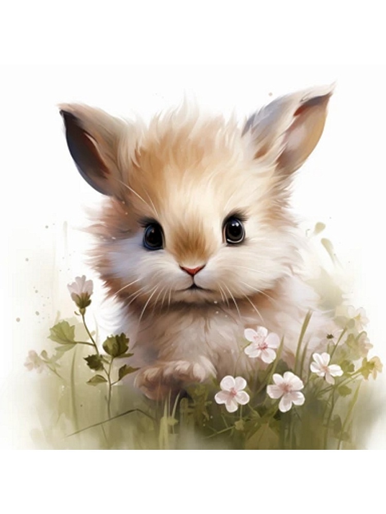 ---...-РыжКот Холст с красками 20х20 см по номерам (16цв.) "Малыши-животные" Зайчик в цветах (арт. Х-063