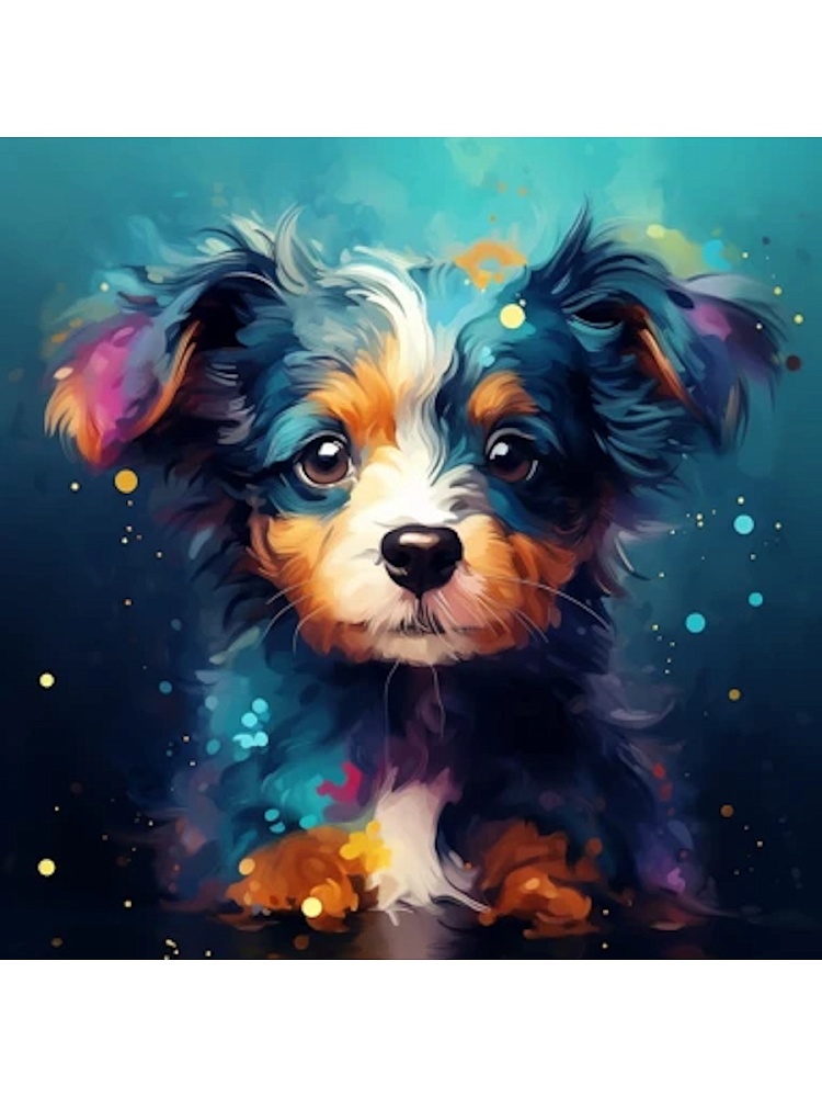 ---...-РыжКот Холст с красками 30х30 см по номерам (20цв) "Малыши" Милый пёсик (арт. Х-6324)