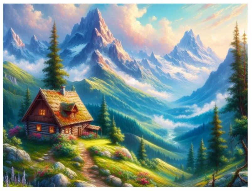 ---...-РыжКот Холст с красками 30х40 см по номерам (30цв.) Горный домик (арт. ХК-5231)