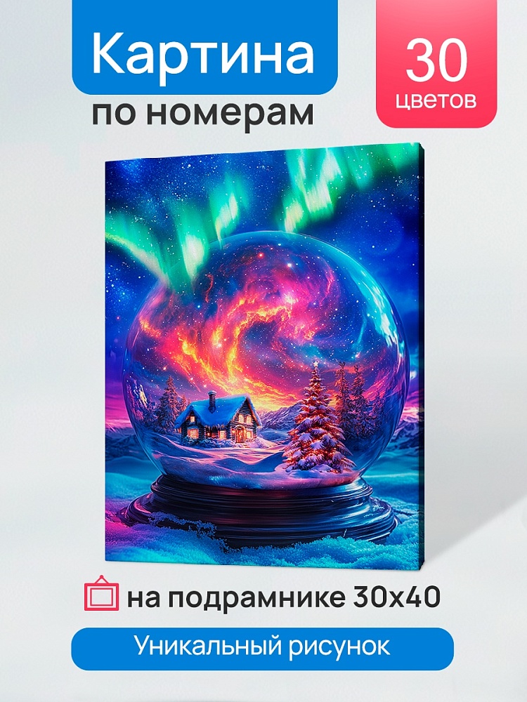 Холст с красками 30х40 см по номерам в коробке (30цв.) Дом в снежном шаре