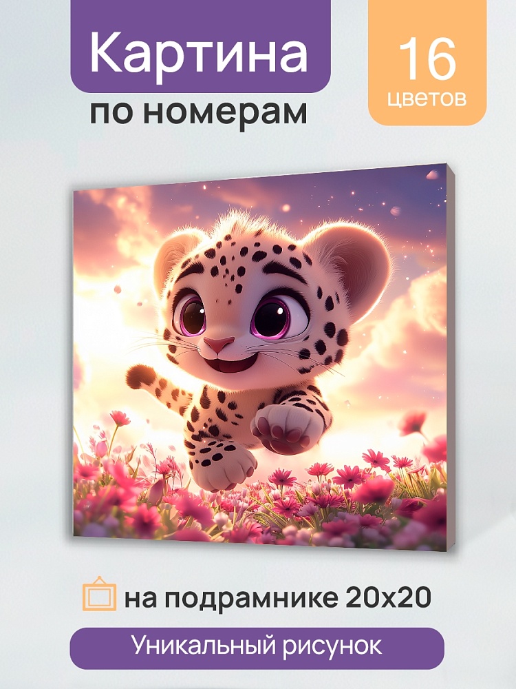 Холст с красками 20х20 см по номерам. Бегущий снежный барс