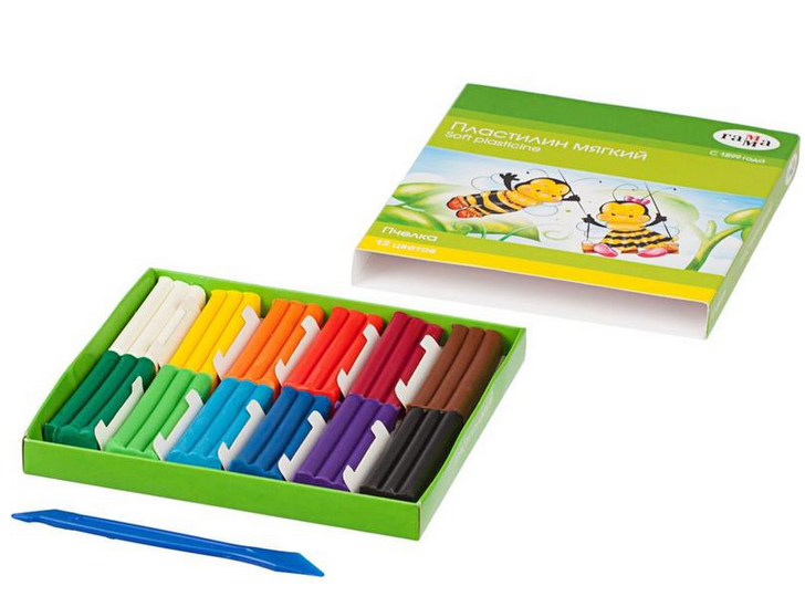 ---...-КанцРЦ Пластилин восковой мягкий Гамма "Пчелка", 12 цветов, 180г, со стеком, картон. упак. 280032Н