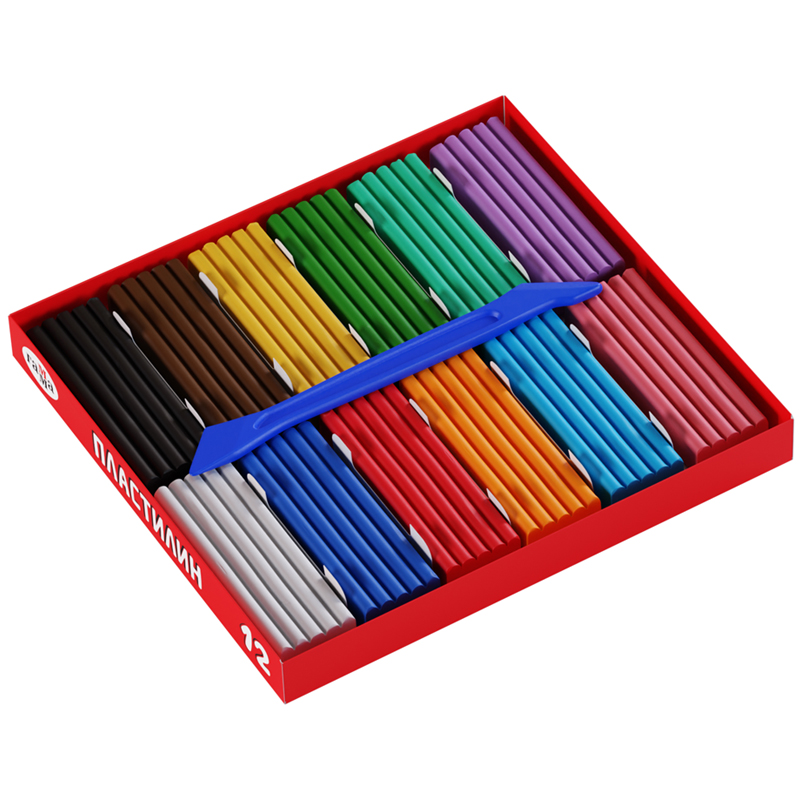 КанцРЦ Пластилин Гамма "Мультики", 12 цветов, 240г, со стеком, картон 280018/281018