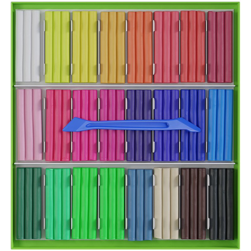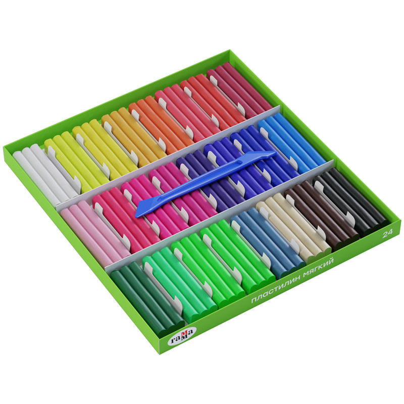 Знакомый с детства пластилин в обновленном дизайне. Благодаря высокому содержанию мягкого воска пластилин очень легко разминается детскими ручками. Отлично подходит для фигурной лепки и для создания картин из пластилина, а фирменный пластиковый стек в комплекте поможет в этом. Не прилипает и не окрашивает руки, не оставляет жирных пятен. Имеет яркие и сочные цвета.Количество цветов: 24.