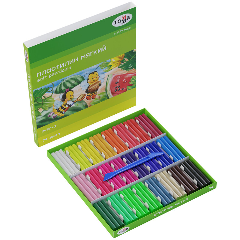КанцРЦ Пластилин восковой мягкий Гамма "Пчелка", 24 цвета, 360г, со стеком, картон. упак. 190820201