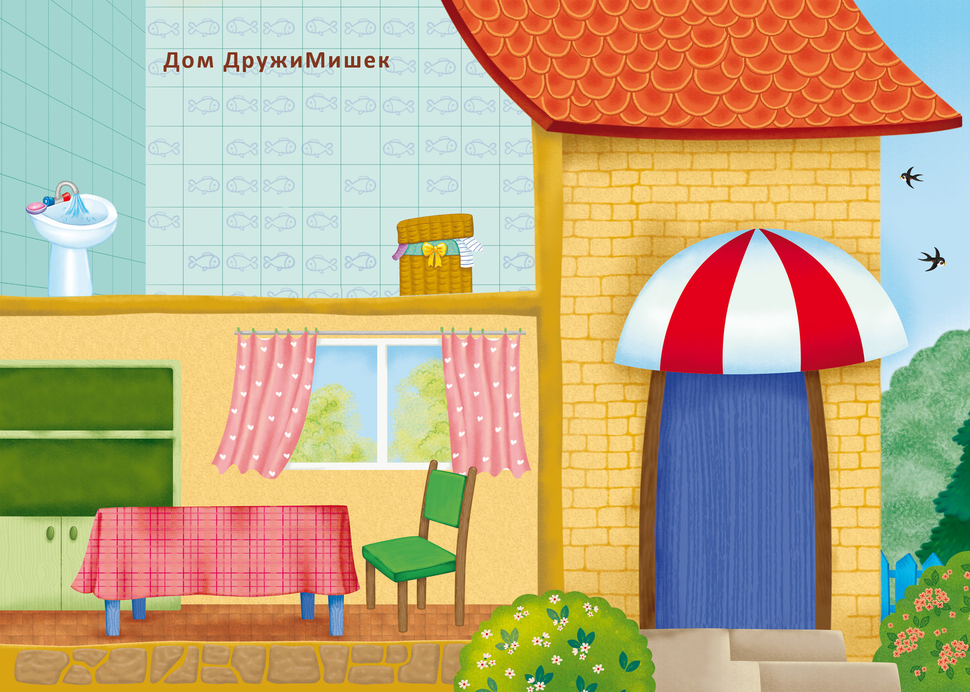 - 11 ярких фонов о жизни и приключениях мишек ДружиМишек и их друзей: в доме, в лесу, на горке, на море и другие.