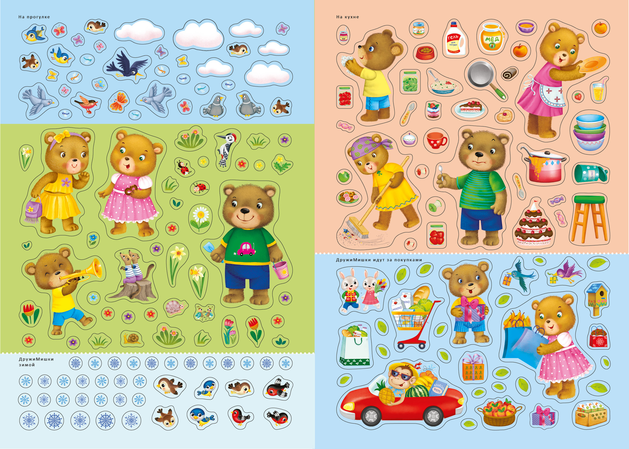 Более 600 ярких наклеек с изображениями мишек ДружиМишек и их друзей, красочные страницы с фонами для заполнения.