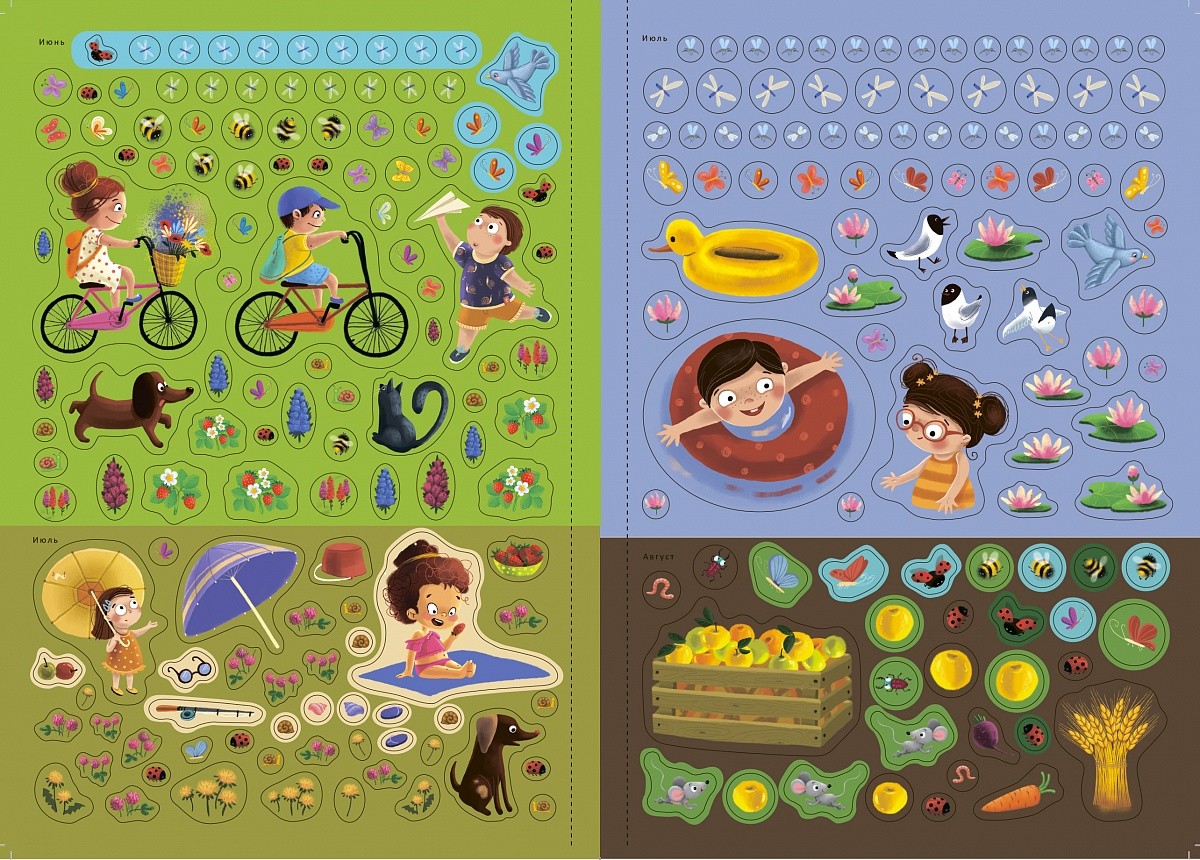 Ваш малыш любит клеить наклейки и ему нужен простор для творчества? Мы придумали книгу как раз для него!В ней вы найдёте 12 ярких тематических фонов каждого календарного месяца: январь, февраль, март, апрель и т.д., более 600 красочных наклеек, которые помогут ребёнку создавать собственные картины и познакомят с четырьмя сезонами: зима, весна, лето и осень, а также 12 стихов о временах года для развития речи и кругозора.