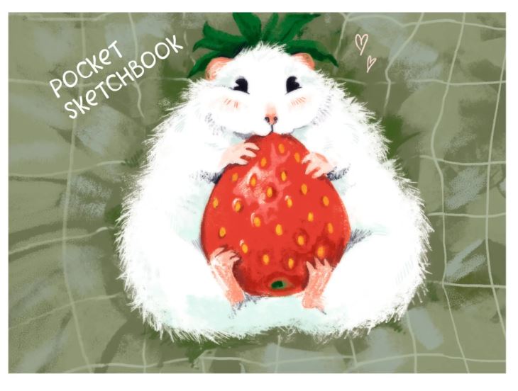 Скетчбук А6 48л. Клубничный хомяк, 7БЦ, матовая ламинация, скругленные углы. Бумага Ivor