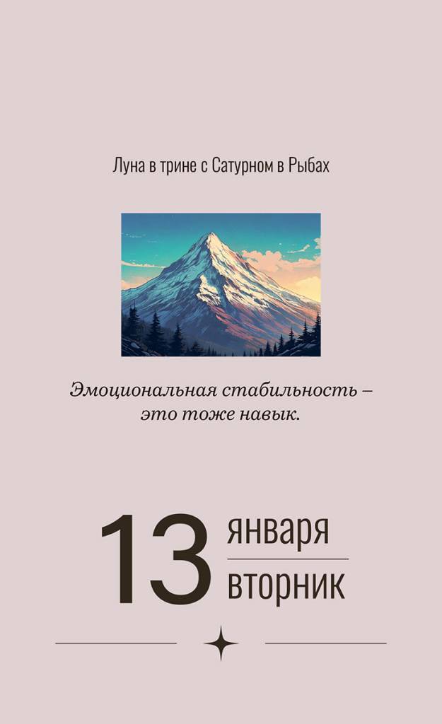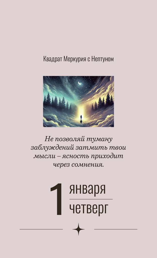 Внутри — рекомендации от профессионального астролога на каждый день, основанные на положении планет и лунных циклах. Они подскажут, когда действовать, а когда взять паузу, чтобы события складывались в вашу пользу.
