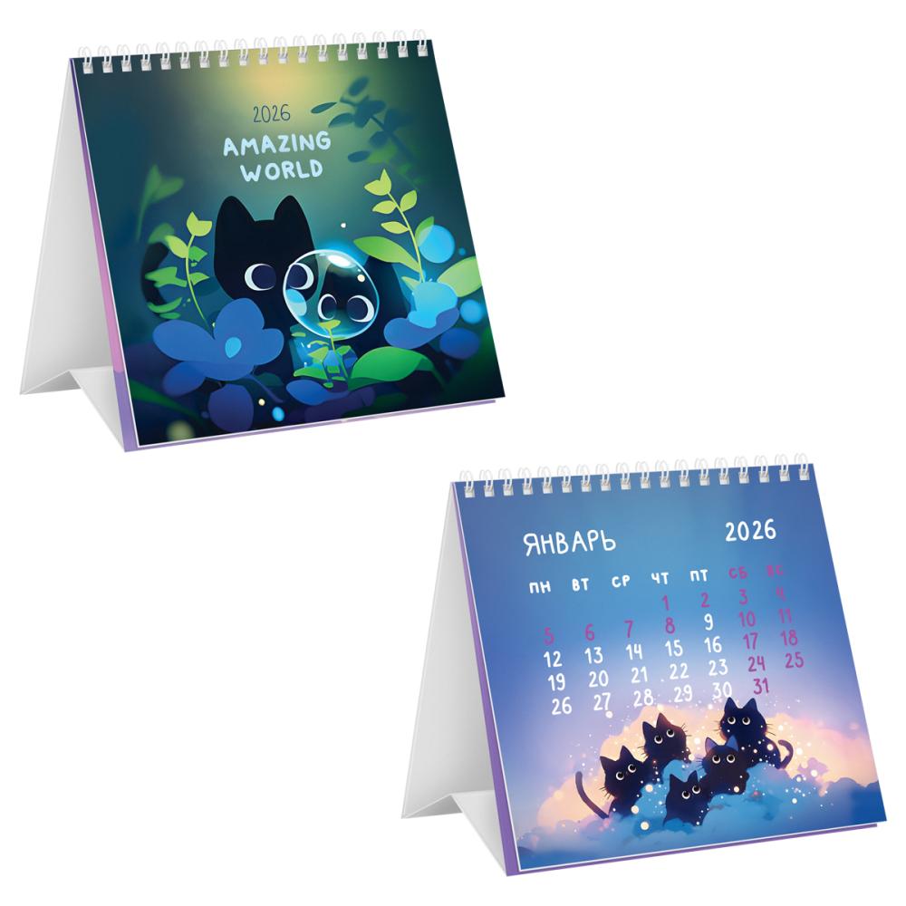 ----...-Календарь-домик, 100*100 мм BG "Amazing world", на гребне, 2026г.