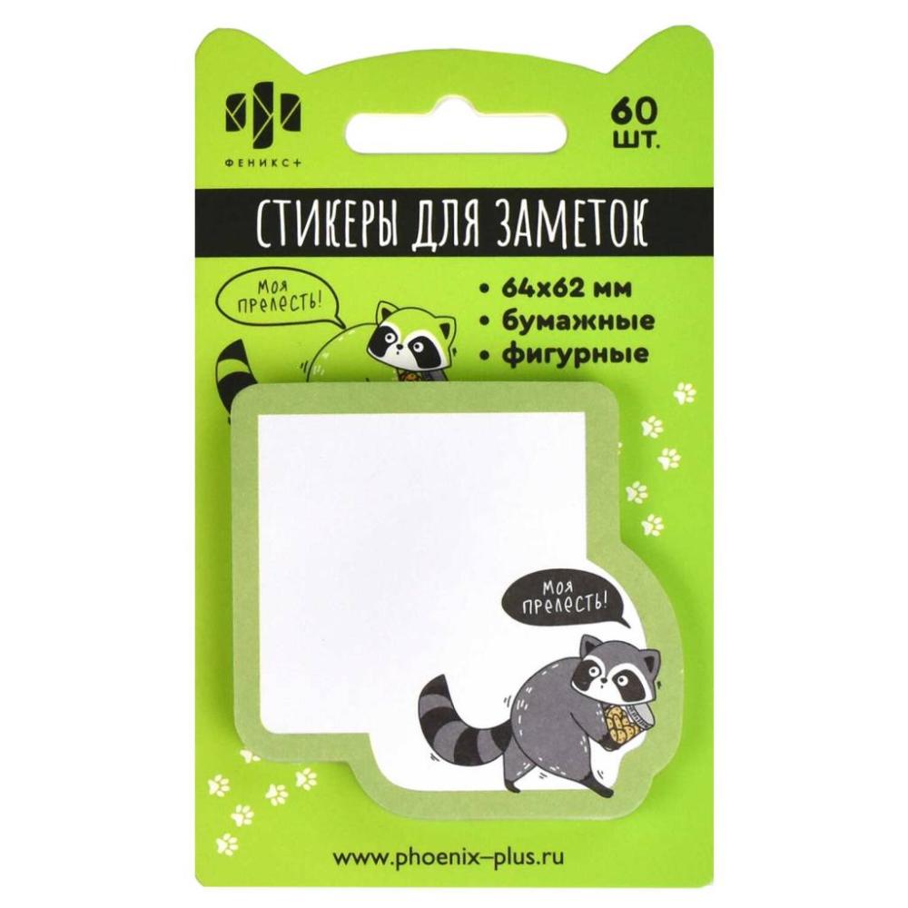 ----...-КанцФеникс Стикеры для заметок бумажные, 64х62 мм, Енот, 60 шт., арт. 65169