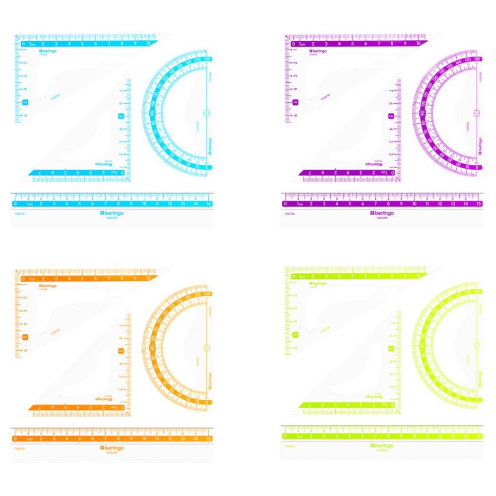 КанцРЦ Набор чертежный малый Berlingo "Color" (треуг. 2шт, линейка 15см, транспортир), прозрачный R