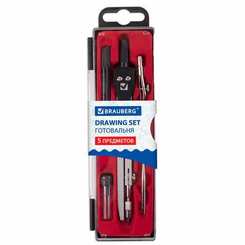 ----...-Самсон Готовальня BRAUBERG "Architect", 5 предметов: циркуль 135 мм, 2 вставки, держатель, грифель