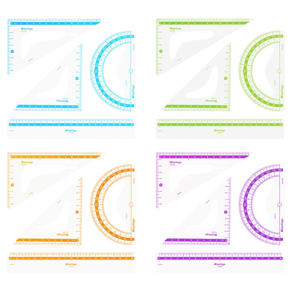 ----...-Набор чертежный средний Berlingo "Color" (треуг. 2шт, линейка 20см, транспортир), прозрачный