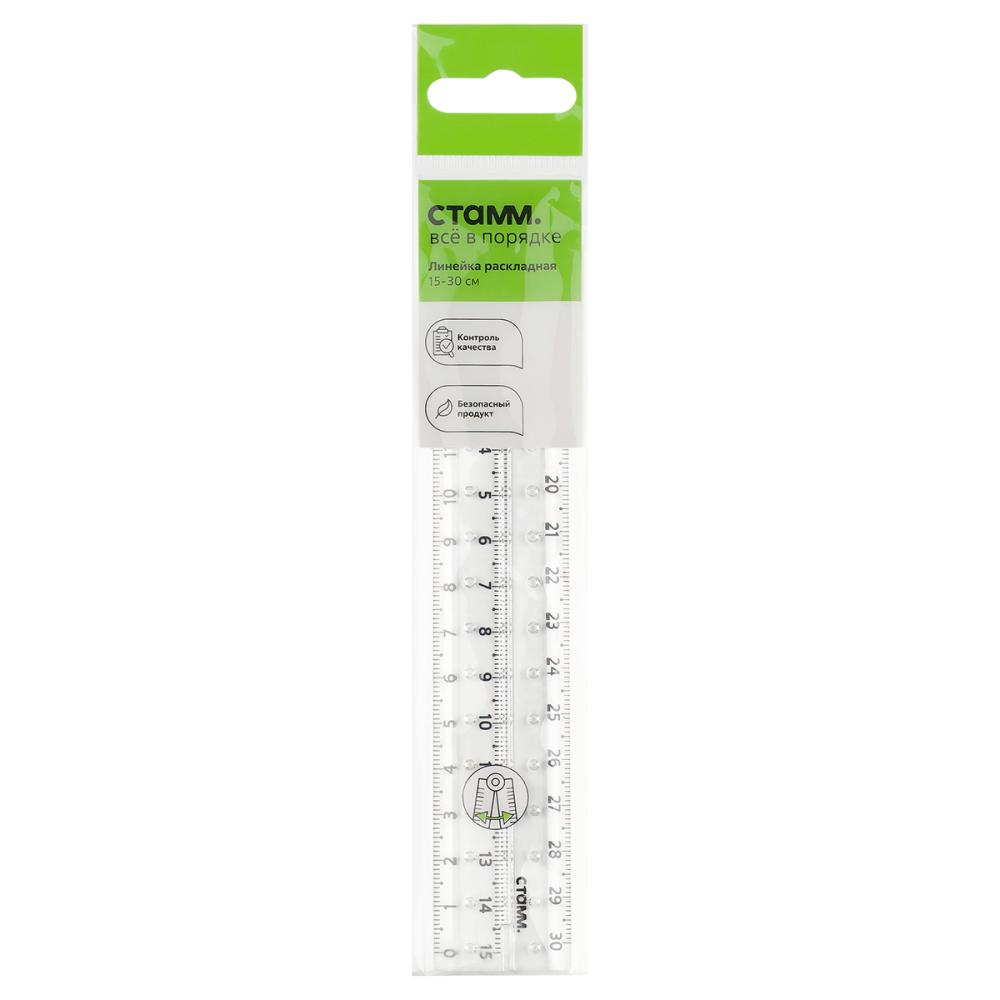 КанцРЦ Линейка раскладная 15-30см СТАММ, пластиковая, прозрачная, европодвес