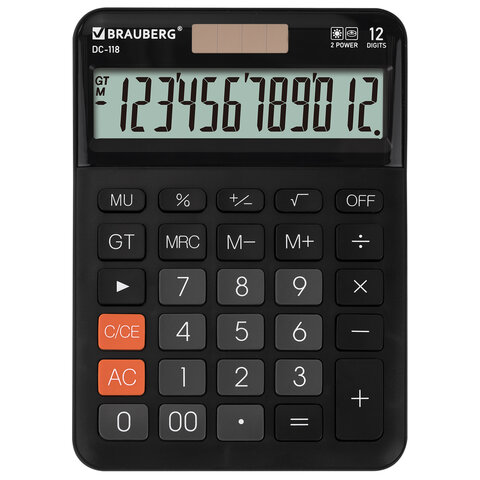 Самсон Калькулятор настольный BRAUBERG (175х126 мм), 12 разрядов, двойное питание, цвет черный,2729