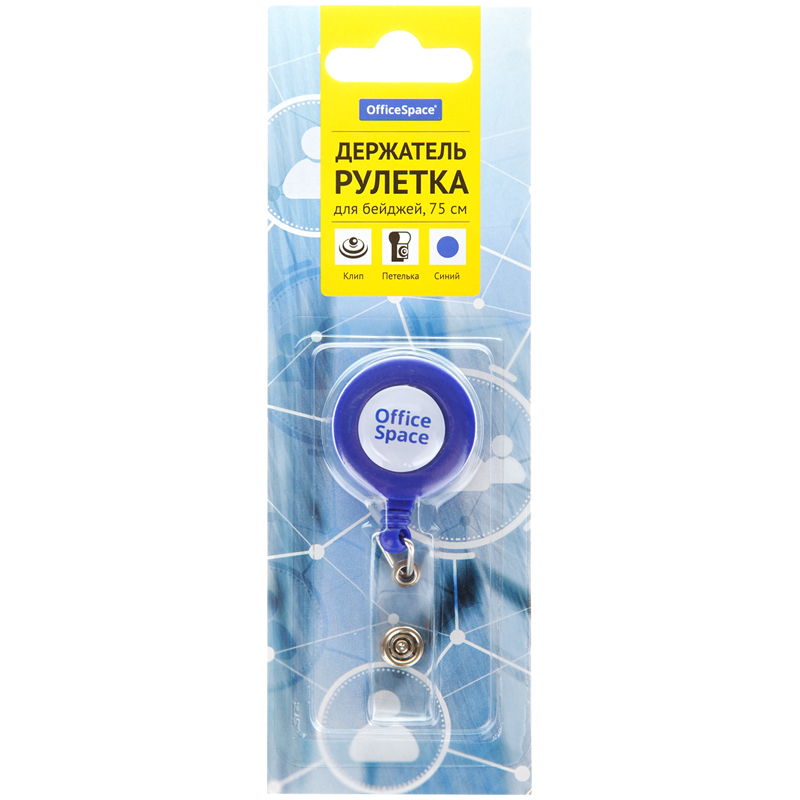 ----...-КанцРЦ Держатель-рулетка для бейджей OfficeSpace, 75см, петелька, клип, синий, блистер 284662