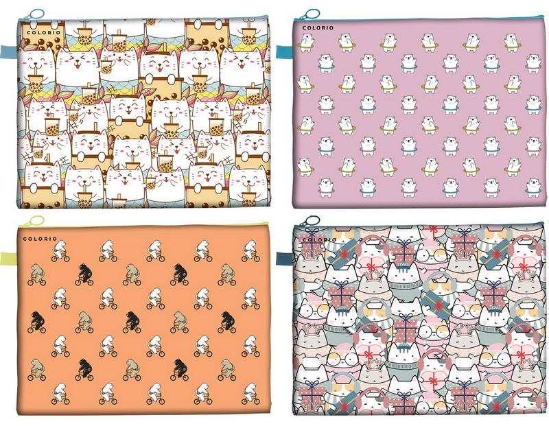 Папка для тетрадей А4 "Звероматрица" 1 отд. на молнии, под кожу, COJB-FC1-1018