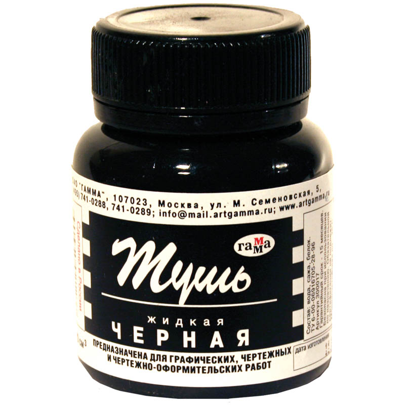 Тушь «ГАММА» для графических, чертёжных, чертёжно-оформительских работ и каллиграфии. Объём: 70 мл. Сочетает яркость цветов и чёткость линий. Оптимальная вязкость, лёгкость и удобство набора туши на рапидограф или рейсфедер. Устойчива к действию воды – достаточно промокнуть чертёж и тушь не растечется. Выдерживает температуру до −25°C.• Цвет: чёрный;