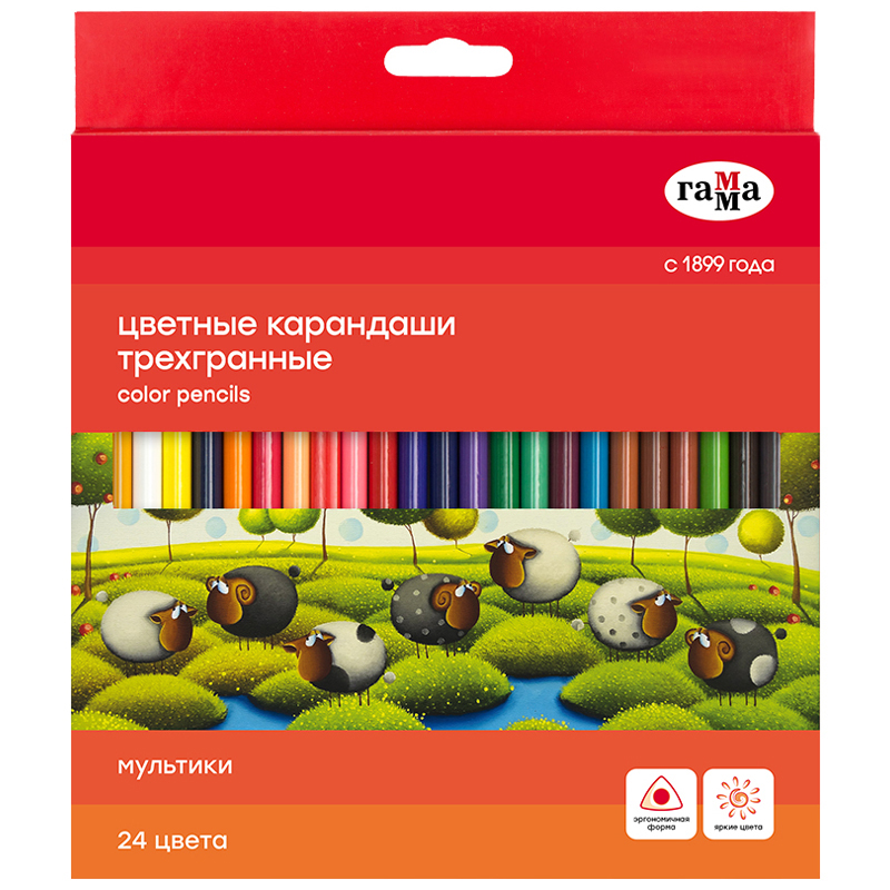 ----...-КанцРЦ Карандаши цветные Гамма "Мультики", 24цв., трехгранные, заточен., картон. упак., европодвес