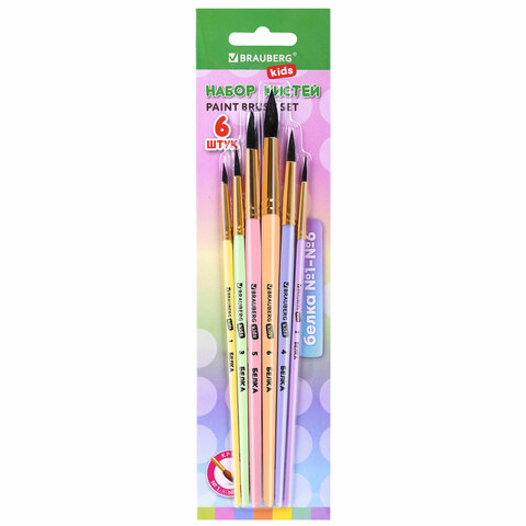 ----...-Самсон Кисти БЕЛКА набор 6 шт. (круглые № 1,2,3,4,5,6), блистер, BRAUBERG KIDS, 201083