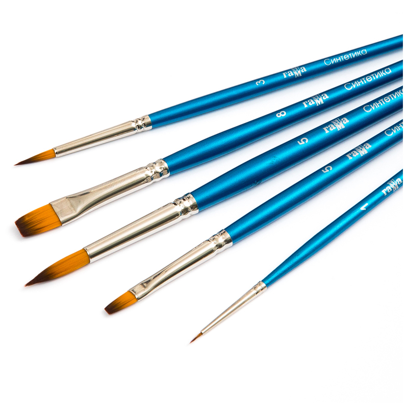КанцРЦ Набор кистей Гамма, 5шт., синтетика, круглые №1, 3, 5 плоские №5,8, блистер
