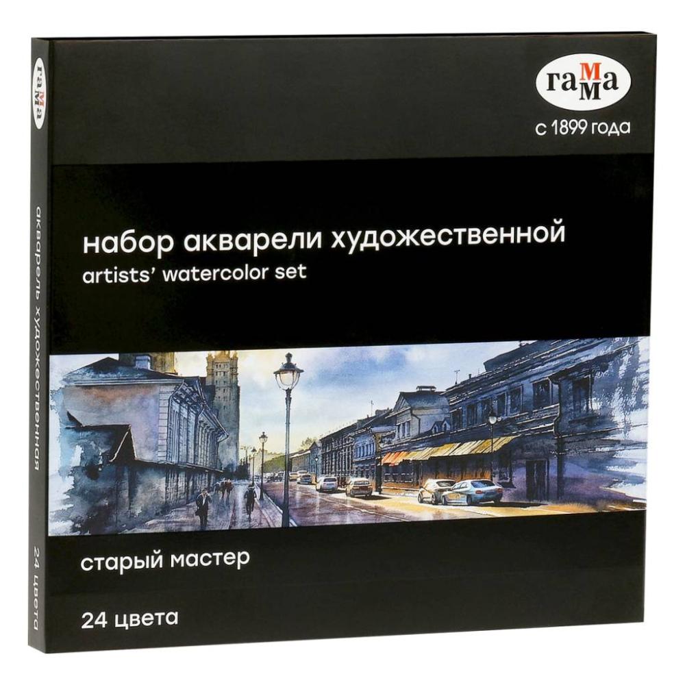 Акварель художественная Гамма "Старый Мастер", 24цв.*2,6мл, кюветы, картон