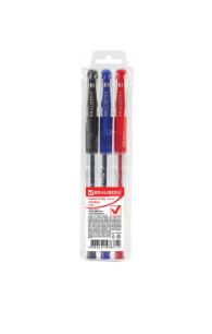 Ручки гелевые с грипом BRAUBERG, НАБОР 3 ЦВЕТА,Number One,узел 0,5мм,лин.письма 0,35, 141305