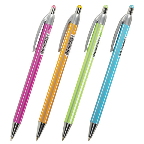 Ручка шариковая автоматическая BRAUBERG, СИНЯЯ, корпус ассорти, линия 0,3мм, 144219