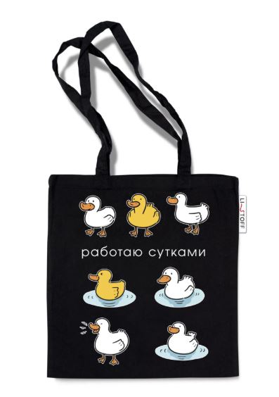 Сумка-шоппер Работаю сутками. Текстиль с принтом. Размеры: 335х370 мм, ручки око