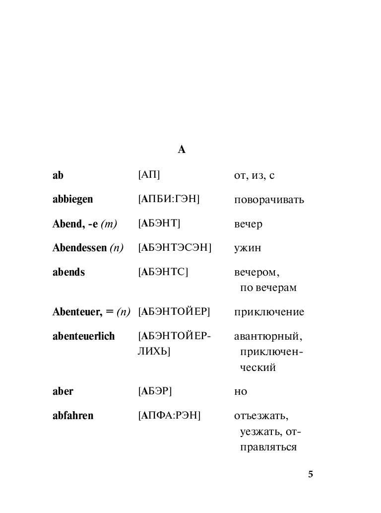 Известный автор С. А. Матвеев предлагает немецко-русский и русско-немецкий словарь для начинающих. В каждой части содержится по 4000 самых употребительных слов. Все слова снабжены транскрипцией русскими буквами, причем в русско-немецкой части тоже дается транскрипция немецких слов. Сложные формы множественного числа существительных представлены полностью. Словарь предназначен для всех, кто стремится овладеть немецким языком.